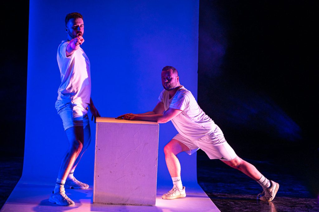 A perky, chirpy, highly choreographed exploration of gay male identity.